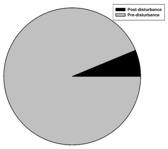 At the community level, substantial literature has developed over the last few decades describing post-wind damage species composition and diversity, see reviews in [9,10]. An especially noteworthy general trend is that wind disturbance to canopy trees often results in the release of suppressed advance regeneration, and if the canopy disturbance is not too severe, survival and subsequent sprouting of canopy trees (lower severity events in [7]). When canopy-size survivors dominate the recovering forest e.g., [5,11], the compositional change from pre-disturbance to recovery is limited; whereas if released advanced regeneration becomes dominant, the compositional change depends on whether the advanced regeneration is made up of the same species as was in the pre-disturbance canopy e.g., [12,13], or if it is a different suite of species e.g., [14]. After an especially severe wind disturbance, abundant new seedling establishment may drive a shift in species composition (e.g., [15,16,17], high-severity events in [7]), usually towards a more early- or mid-successional suite of species. Thus, in terms of change in species composition, wind disturbance that damages canopy tree crowns while leaving lower trunks and root systems intact will result in the least change in species composition, while situations that result in an abundant new seedling establishment (e.g., very high severity, sometimes combined with chronic pre-disturbance herbivory that removes advance regeneration) will result in the most compositional change. Situations that result in regeneration from the release of advanced regeneration and subcanopy saplings, will result in limited compositional change if the advanced regeneration is populated by the same species as was in the canopy, or substantial compositional change if the advanced regeneration is compositionally distinct from the canopy species. Because this site had advanced regeneration comprised of similar species as those in the canopy, the first hypothesis tested here is that regeneration will show little change from pre-disturbance canopy tree composition or species diversity.