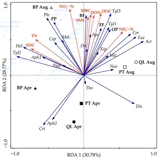 - Li, Z.P.; Wei, Z.F.; Yang, X.D. Seasonal variations of soil nematode community at different secondary succession stages of evergreen broad–leaved forests in Ailao Mountain. Chinese Journal of Ecology. Chin. J. Ecol. 2016, 35, 3023–3031. [Google Scholar]
