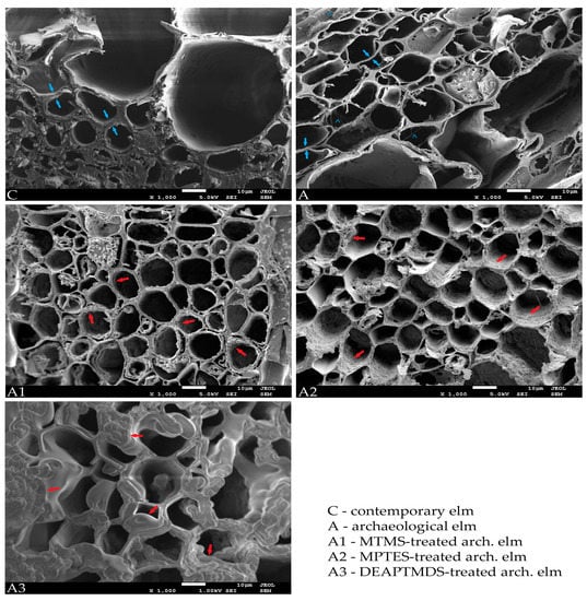 - Broda, M.; Curling, S.F.; Spear, M.J.; Hill, C.A.S. Effect of methyltrimethoxysilane impregnation on the cell wall porosity and water vapour sorption of archaeological waterlogged oak. Wood Sci. Technol. 2019, 53, 703–726. [Google Scholar] [CrossRef]