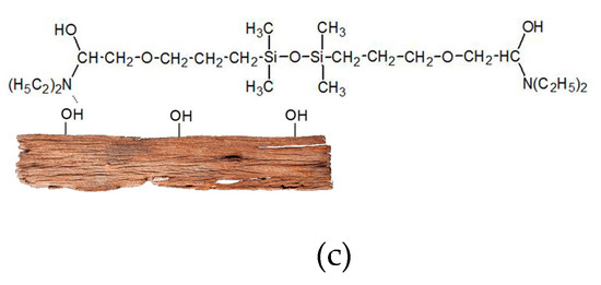 - Broda, M.; Mazela, B.; Dutkiewicz, A. Organosilicon compounds with various active groups as consolidants for the preservation of waterlogged archaeological wood. J. Cult. Herit. 2019, 35, 123–128. [Google Scholar] [CrossRef]