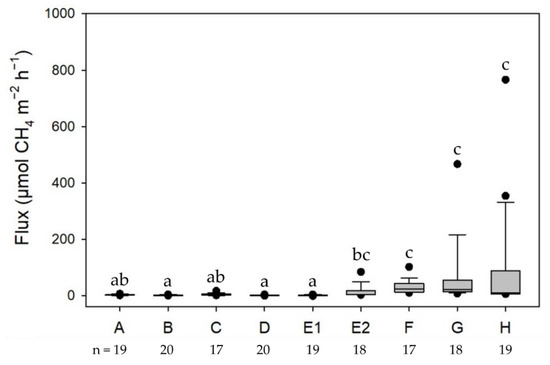 - Segarra, K.E.A.; Samarkin, V.; King, E.; Meile, C.; Joye, S.B. Seasonal variations of methane fluxes from an unvegetated tidal freshwater mudflat (Hammersmith Creek, GA). Biogeochemistry 2013, 115, 349–361. [Google Scholar] [CrossRef]