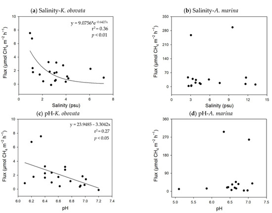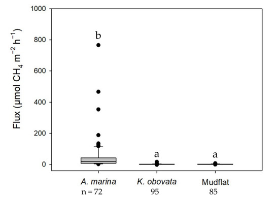 - Lin, C.W.; Kao, Y.C.; Chou, M.C.; Wu, H.H.; Ho, C.W.; Lin, H.J. Methane Emissions from Subtropical and Tropical Mangrove Ecosystems in Taiwan. Forests 2020, 11, 470. [Google Scholar] [CrossRef]