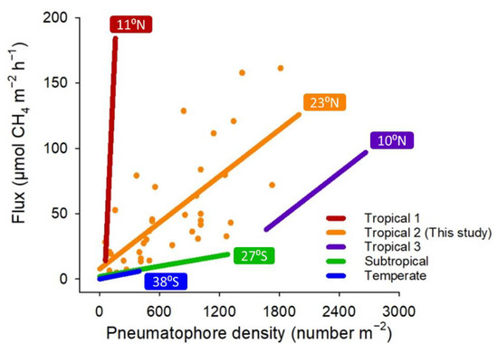 Effects of Pneumatophore Density on Methane Emissions in Mangroves