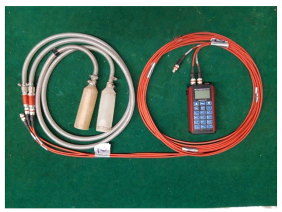 Figure 3) with the pressure sensor consisting of a strain gauge connected with a pressure probe, recording unit MultiHandy 3020 and notebook with the software for data processing. The pressure probe (flexible plastic container of cylindrical shape with a diameter of 30 mm and length of 140 mm) was connected to the strain gauge by means of a reinforced rubber hose. The whole closed system was filled with liquid and deaerated. By this, a homogeneous hydraulic connection was created, through which the soil pressure on the pressure probe walls was transmitted onto the measuring strain gauge type P8AP made by HBK (Hottinger Brüel & Kjaer GmbH, Darmstadt, Germany) with a range of measured pressures from 0 to 1000 kPa (measurement accuracy class of 0.3). The strain gauge was interconnected with the recording unit. The frequency range of measurement (sampling frequency) was set to 10 samples per second. Prior to the measurement, accuracy of the measuring device was calibrated by loading the pressure probes with a defined load, subsequent reading of the pressure value, and its comparison with the numerically established result. It was found that the measurement error reached max. 4%, which appeared fully sufficient with respect to the purpose of the measurement.