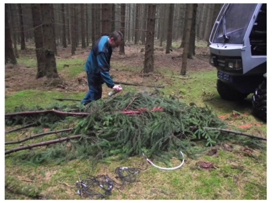 Picea abies (L.) H. Karst.) administrated by the Training Forest Enterprise Masaryk Forest Křtiny of Mendel University in Brno. Soil type in the stand was Eutric Cambisol, soil profile moisture content ranged from 28% to 36%, longitudinal slope gradient range was from 0 to 5°, and cross slope was 0°. The measurements were taken on basic operating variants of the machine with the wheeled chassis (