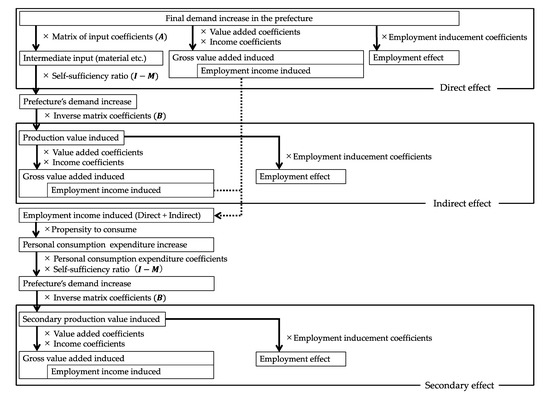 As in the previous paper [19], we evaluated the production value induced, the gross-value-added induced, the employee income induced, and the employment effect for the direct, indirect, secondary, and total effects with respect to the economic impact.