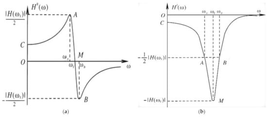 The real and imaginary frequency diagrams can then be used to confirm the modal frequency and the damping ratio. The modal frequency is determined by the frequency corresponding to the high amplitude in the real frequency characteristic curve (Figure 4a), or the frequency corresponding to the lowest (valley) value in the imaginary frequency characteristic curve (Figure 4b). The damping ratio can be determined by the half-power bandwidth . The -th order damping ratio coefficient can be calculated from the imaginary frequency characteristic curve: