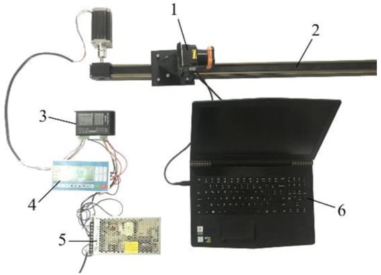 Laser point cloud scanning system. 1. Laser scanner. 2. Slide guide. 3. Stepper motor driver. 4. Programmable automation controller. 5. 24 V DC power supply. 6. PC.