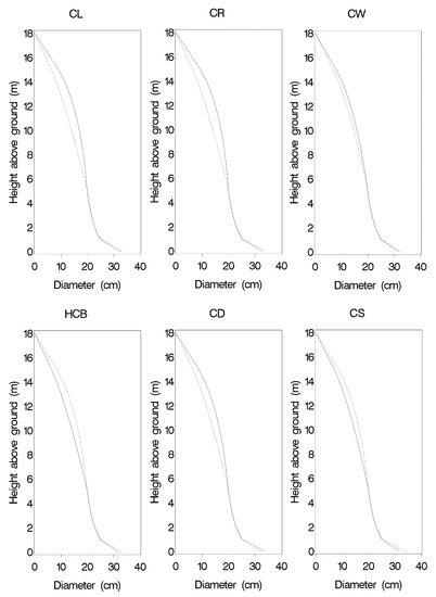 11. Sharma, M.; Zhang, S. Variable-exponent taper equations for jack pine, black spruce, and balsam fir in eastern Canada. For. Ecol. Manag. 2004, 198, 39–53. [Google Scholar] [CrossRef]