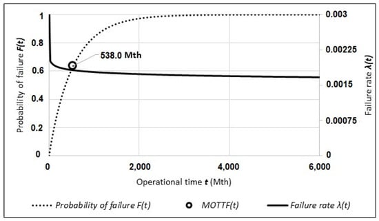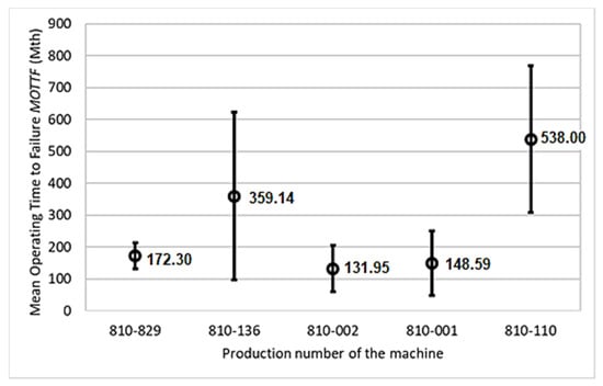 As the last indicator of reliability, there was a defined MOTTF. For all the observed machines, Weibull distribution and prediction were used, obtaining:
