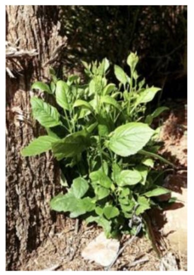 Symptoms of ALY are yellowing, premature autumn coloration, sparse foliage, small leaves, die-back, and decline. Shoot proliferation may occur at the base of trunk of affected trees (Figure 3). Latent infections have been observed as well [,,,]. Lederer and Seemüller [] examined 500 A. glutinosa (European alder) trees for phytoplasma infections using DAPI (4’-6-diamidino-2-phenylindole) fluorescence methods. All trees older than 5 years tested positive for phytoplasma infections. However, the majority of infected trees were non-symptomatic. Usually, non-symptomatic trees revealed a higher colonization density than symptomatic ones. The colonization density was always higher in leaves and young twigs than in other parts of the trees. The phytoplasma distribution within the affected phloem tissue was uneven, with some sieve tubes filled by phytoplasmas, while others completely empty or containing only a few phytoplasmas. Similar findings were obtained by examining A. incana trees []. Under natural infection conditions, high detection rates ranging from 85 to 100% of ALY phytoplasma infections in A. glutinosa were also recorded by PCR [,,,,]. No phytoplasma infections have been recorded in A. viridis either by DAPI fluorescence methods or PCR assays [,]. This lack of infections may be ascribed to the host preference or unfavorable conditions of the insect vector(s).