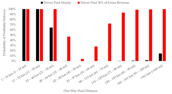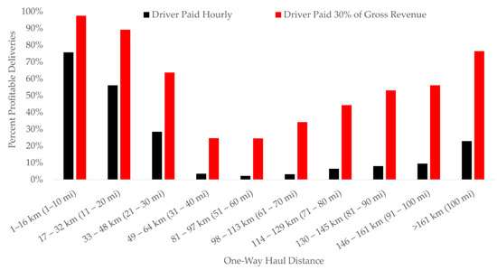 Percentage of profitable deliveries by haul distance.