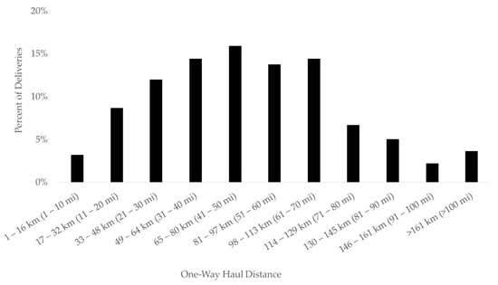 Percentage of deliveries in the sample by haul distance.
