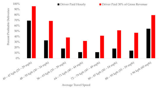 Percentage of profitable deliveries by average travel speed.