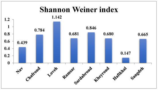 In Figure 3, the highest Shannon diversity index is in Loveh forest site (1.142) and the lowest is related to Haftkhal forest site (0.147).