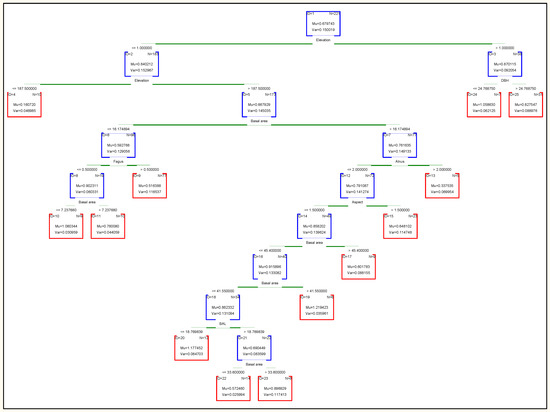 ML models have many advantages that justify their choice for modeling forest features such as biodiversity. For example, the random forest approach is less sensitive to parameter adjustments than other ML models, and it provides an assessment of the importance of variables. This model is more powerful in reducing data than other models, and it is more accurate than decision trees; it also generates an internal unbiased estimate of the generalized error as model building progresses [35,36].