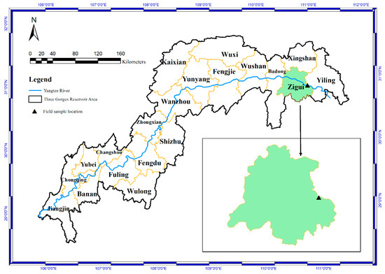 Experiments were conducted at the Forest Ecosystem State Positioning Observation Station in the Three Gorges Reservoir area (110°54′ E, 30°53′ N, 375 m altitude), Zigui County, Hubei Province, China (Figure 1). It had a subtropical temperate continental monsoon climate, with a mean annual precipitation of 1245 mm, a mean monthly temperature of 16.5 °C, and average daily humidity of 60–80% [22]. P. massoniana is one of the main coniferous species in this area. The monthly mean temperatures and precipitations from 2016 to 2018 at the study site are shown in Figure 2.