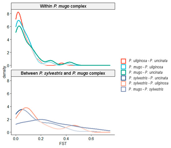 | P. sylvestris vs. P. mugo | 0.260 ± 0.197 | 0.00181 ± 0.00203 |