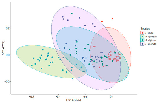 | P. mugo vs. P. uncinata | 0.088 ± 0.104 | 0.00054 ± 0.00087 |