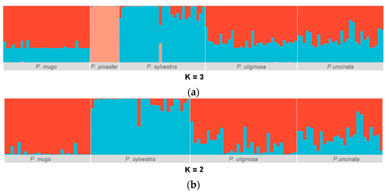 - Falush, D.; Stephens, M.; Pritchard, J.K. Inference of population structure using multilocus genotype data: Dominant markers and null alleles. Mol. Ecol. Notes 2007, 7, 574–578. [Google Scholar] [CrossRef]