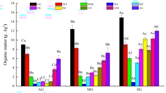 - Celik, I. Land use effects on organic matter and physical properties of soil in a southern Mediterranean highland of Turkey. Soil Till. Res. 2005, 82, 270–277. [Google Scholar] [CrossRef]