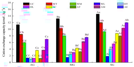 - Rhoades, J.D. Cation exchange capacity. In Methods of Soil Analysis, Part 2; Page, A.L., Miller, R.H., Keeney, D.R., Eds.; America Society of Agronomy: Madison, WI, USA, 1982; pp. 149–157. [Google Scholar]