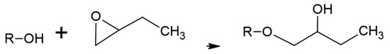 Butylene oxide modification of wood polymer where R = wood polymers.