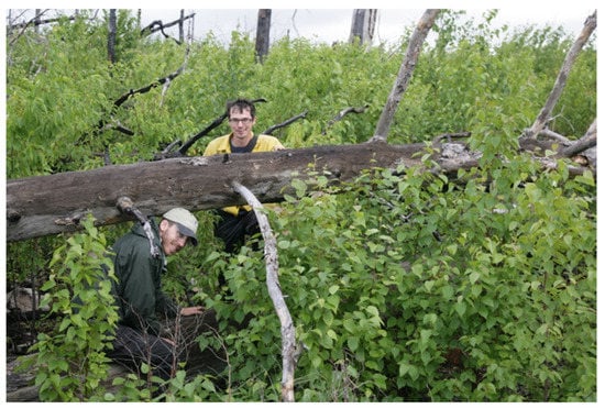 - Anoszko, E.; Frelich, L.E.; Rich, R.L.; Reich, P.B. Wind and fire: Rapid shifts in tree community composition following multiple disturbances in the southern boreal forest. Ecol. Monog. 2021. under review. [Google Scholar]