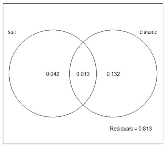 To evaluate the ability of climate, soil and geographic variables to explain the variation of outlier loci per species, we applied a multi-tiered variance partitioning method (e.g., [61]) to the results of a redundancy analysis (RDA) after including the Hellinger’s transformation, as implemented in the vegan R package (rda and varpart functions) [62,63].