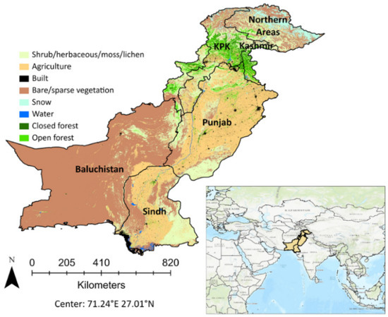 Balochistan is the largest province regarding land area with less population. It has a low forest cover of 1.5% and 26.7% rangeland [7].