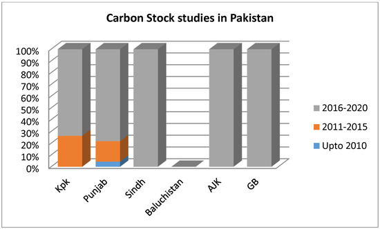 Few research studies have been conducted on forest ecosystem biomass and carbon stock in the first decade (2000–2010) of the 21st century. Most research on biomass can be found in the second decade of the current century. These research studies on carbon stock assessment are broadly based on provincial territories, such as Khyber Pakhtunkhwa (KP), Sindh, Punjab, Balochistan, Azad Jammu and Kashmir (AJK) and Gilgit Baltistan (GB).