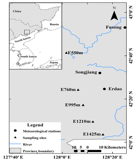 - Yu, J.; Liu, Q. Larix olgensis growth-climate response between lower and upper elevation limits: An intensive study along the Eastern slope of the Changbai Mountains, Northeastern China. J. For. Res. 2018, 31, 231–244. [Google Scholar] [CrossRef]