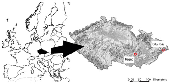 Geographical location of the two experimental study plots in the Czech Republic.