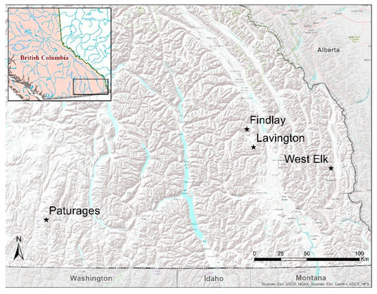 - MacKillop, D.; Ehman, A.; Ryan, M. A Field Guide to Ecosystem Classification and Identification for Southeast British Columbia: Four Biogeoclimatic Subzones/Variants in the Boundary-Okanagan: Temporary Supplement to Land Management Handbook 70; B.C. Ministry of Forests, Lands and Natural Resource Operations: Victoria, BC, Canada, 2016.