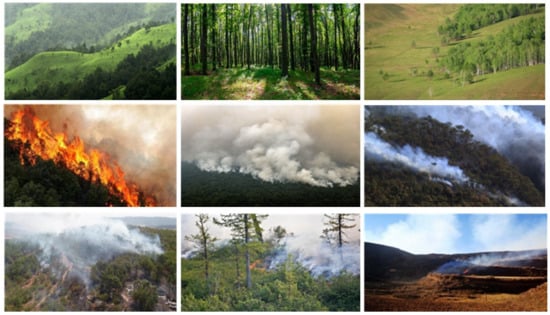 Forest fires have become one of the major disasters causing serious ecological, social, and economic damage, as well as personal casualty loss [1,2,3]. In 2013, a forest fire burned a land area of approximately 1042 km2 in California, causing USD 127.35 million of damage. In China, 214 forest fire events occurred alone in the Huichang County of the JiangXi province from 1986 to 2009, with an area of more than 460 km2 being affected [4]. The statistical data provided in [5] show that fire disasters alone caused an overall damage of USD 3.1 billion in 2015. To monitor the fire smoke, numerous image-based surveillance systems have been installed in forests. Therefore, rapid and accurate detection and grading of fire smoke is crucial and helpful for preventing and reducing the forest losses.