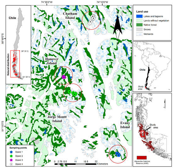 - Donoso, C. Bosques Templados de Chile y Argentina: Variación, Estructura y Dinámica, 4th ed.; Editorial Universitaria: Santiago, Chile, 1998. [Google Scholar]