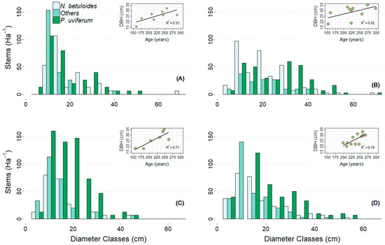 - Bannister, J.R.; Donoso, P.; Bauhus, J. Persistence of the slow growing conifer Pilgerodendron uviferum in old-growth and fire-disturbed southern bog forests. Ecosystems 2012, 15, 1158–1172. [Google Scholar] [CrossRef]