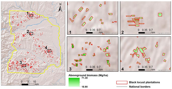 Overall, the high temporal and spectral resolution of the Sentinel satellites facilitated the development of monthly black locust AGB models and contributed to the identification of the optimal phenostage in terms of modeling accuracy. The results of the study indicate that such a monthly modeling approach, based only on Sentinel-2 data, can be transferred across the country for biomass mapping over black locust plantations.