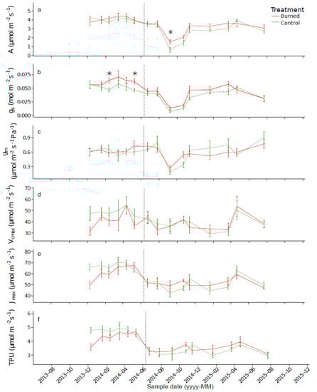 - Renninger, H.J.; Clark, K.L.; Skowronski, N.; Schäfer, K.V.R. Effects of a prescribed fire on water use and photosynthetic capacity of pitch pines. Trees 2013, 27, 1115–1127. [Google Scholar] [CrossRef]
