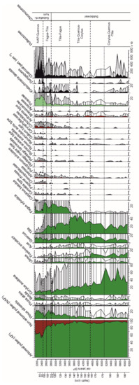 - Birks, H.J.B. Paleoecology. In Encyclopedia of Ecology, 2nd ed.; Fath, B., Ed.; Elsevier: Amsterdam, The Netherlands, 2019; p. 504. [Google Scholar] [CrossRef]