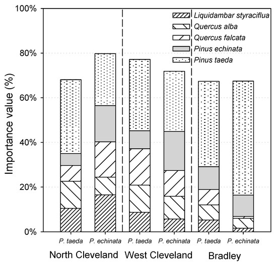 | Bradley | Shortleaf | 8 | 396 (33) | 29.7 (5.2) | 30.3 (2.8) | 21.3 (2.7) | 49 (0.1) |