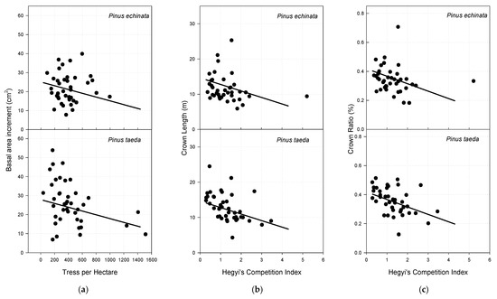 - Contreras, M.A.; Affleck, D.; Chung, W. Evaluating tree competition indices as predictors of basal area increment in western Montana forests. For. Ecol. Manag. 2011, 262, 1939–1949. [Google Scholar] [CrossRef]