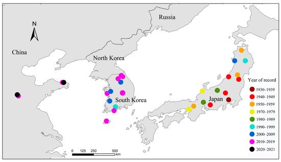 We present new records in China and South Korea. The updated distribution in East Asia will contribute to status as an introduced or native species that directly relates to its control and management.