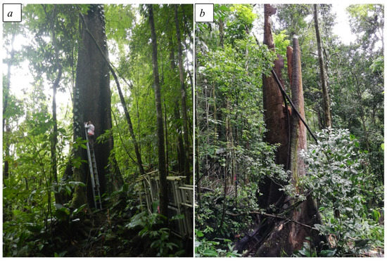 Despite widespread interest in “gap dynamics” [1], there have been markedly fewer publications assessing how water use among neighboring trees is altered from treefall gaps in natural systems. The lack of academic focus on this topic may have arisen as a consequence of the assumption that the tree thinning is a prerequisite to observing substantial increases in tree water use and availability [9,10,11,12] or is possibly due to the fact that there are soil and climatic factors [13,14] that may make assessing the hydrological significance of these events more challenging, especially in natural forest systems. Literature on treefall gaps is particularly lacking in tropical forests. Here, water use is scarcely analyzed in conjunction with treefall gaps, possibly due to limitations in both identifying and dating the tree gaps within dense tropical forests and in the ability to assess tree water use both pre- and post-canopy gap formation. However, rainfall has been shown to significantly influence species turnover in conjunction with soil phosphorus concentration, highlighting the need to better understand water use dynamics within highly biodiverse tropical forests [15]. Furthermore, understanding how tropical treefall gaps influence forest level water use is pertinent due to the variability of plant individuals within a highly biodiverse tropical forest, especially concerning early life stage water-use efficiency [16]. Partitioning the influence of treefall gaps on water usage among species residing at different canopy levels provides additional insight as to how this disturbance and the following increase of light is distributed among species at differing canopy levels.