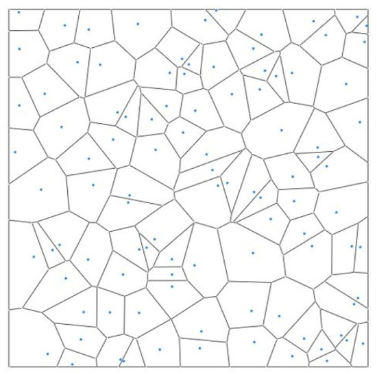 The Voronoi diagram is a popular tool to describe the spatial structure of tree patterns. It calculates the effective influence range of the points according to their discrete distribution. The Voronoi diagram segmentation algorithm has been widely used in various fields and successfully applied in analyzing the number of competitive trees recently (Figure 3). Different forest tree patterns possess certain variation regularity in their Voronoi diagrams. The standard deviations of the mean value show distinct differences [21]. The range of randomly distributed forests was Sv: [1.264, 1.402]. If Sv < 1.264, the forest was an even spatial pattern; if Sv > 1.402, it was clustered.