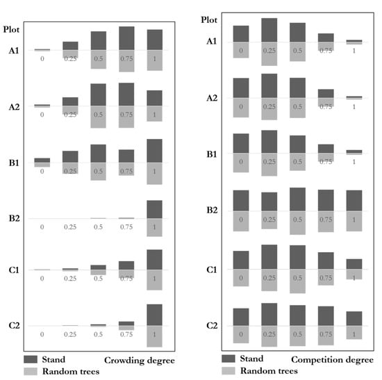 The competition degree analyzed the forest competition based on the structural unit. Ci assumes five values. See Figure 6.