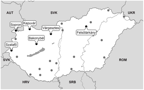 We found non-significant trends at (from west to east): Szalafő, Sopron, Kapuvár, and Várgesztes.