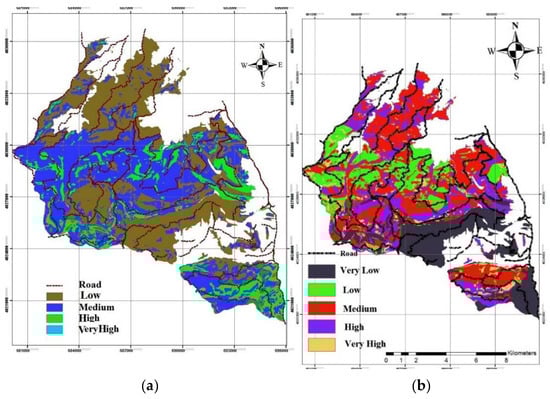 The databases include the landslide triggering factors that were constructed in the raster format using identical spatial projection and cell size (20 × 20 m). Finally, from the combination of the raster layers of the effective factors and landslide inventory map, we produced a landslide risk zonation map using the frequency ratio procedure (Figure 4) [58].