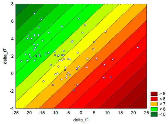 Mi = 7.09 − 0.153 ΔT7 + 0.044 ΔT1