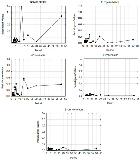 3.4. Spectral Analysis in Radial Growth